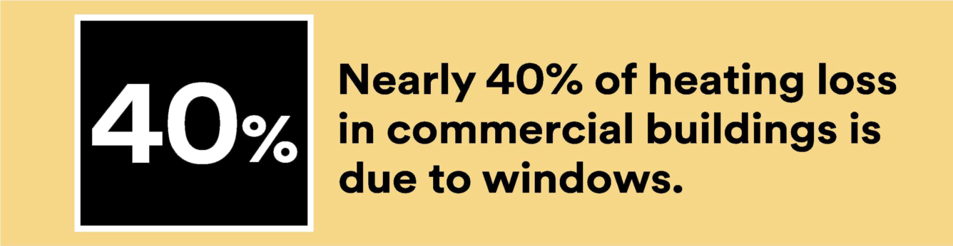 Nearly 40% of heating loss in commercial buildings is due to windows. 3M™ Thinsulate™ Climate Control Window Film is a Low-E product that improves the insulation value of a typical single-pane window at a fraction of the cost of window replacement.