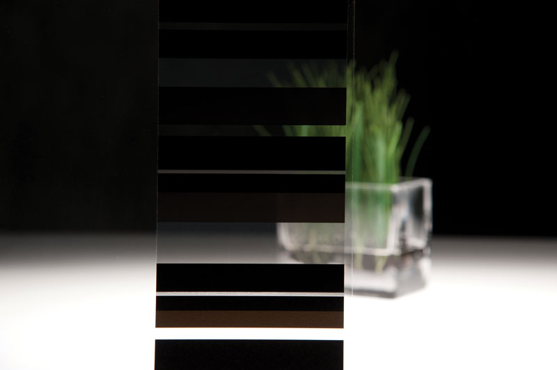 Give a high tech appearance to your glass surfaces with different patterns offering vertical or horizontal stripes of various thickness and colour density on clear, opaque, or black film. These patterns create a dramatic difference by significantly altering the appearance of glass surfaces.