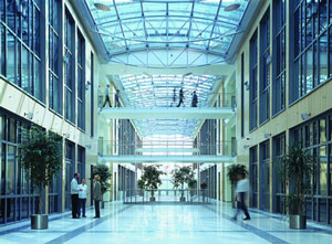 Many office buildings have a problem with unwanted heat from the sun not only in the summer months but also in the winter when the A/C is turned off. Unless a building is specifically designed to gather and distribute the solar heat uniformly in all areas, tenants will experience hot spots on the south, east and west elevations and building owners, in turn, will receive a rash of complaints. Even with zone control, offices with south, west and east exposures can be difficult to keep at a comfortable temperature. Covering the windows with blinds or shades is not always the best option since these block the view, reduce natural daylight and continue to let heat into the interior space.